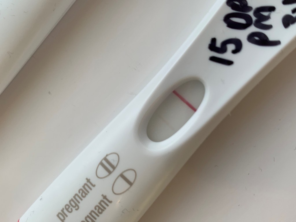 12 days after the injection I did my first pregnancy test which was negative, I did another 2 days after this, which actually had a very faint half line, which could have been a dodgy test, so obviously I got more. I did more and some had faint lines and some didn’t – 4 different brands too just to be safe! 15 days after trigger I got a positive test result, it was faint but it was also very visible and not just me going mad, mu husband agreed there was definitely a line. See picture below – because of this I was beyond elated.